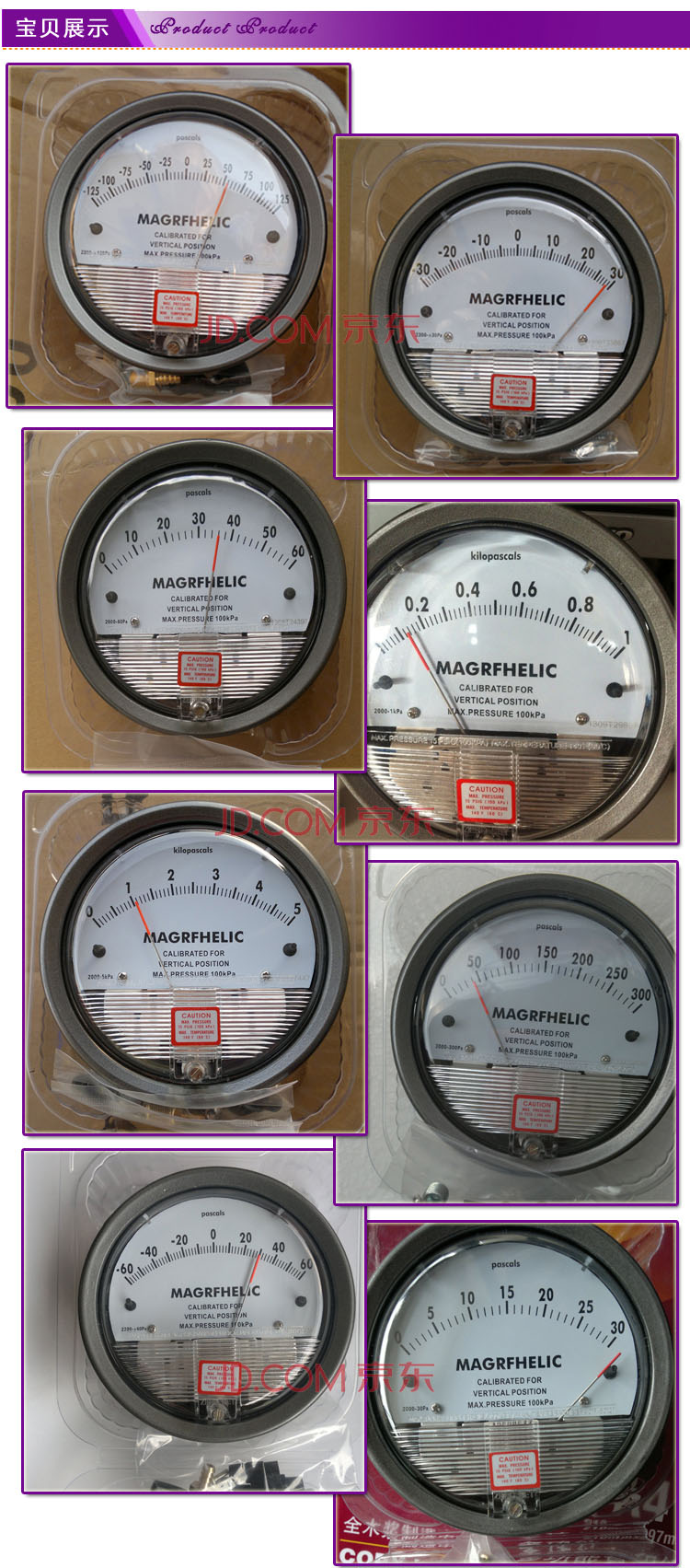 商品名称:爱德克斯 2000型微压差表 微压力表 压差计 差压表圆形指针 正负30PA