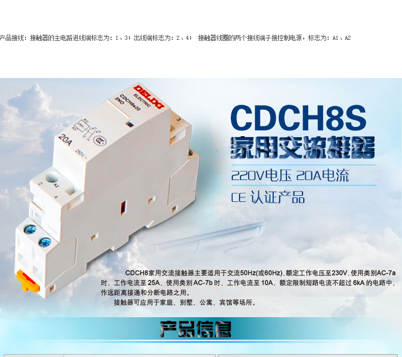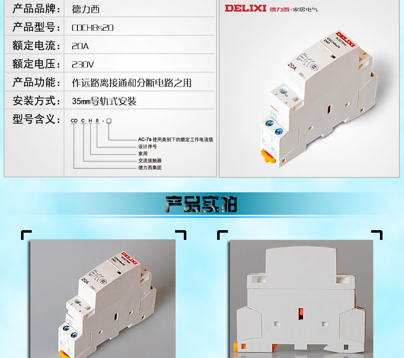 商品名称:德力西小型家用交流接触器CDCH8-20a接触器 德力西低压电器