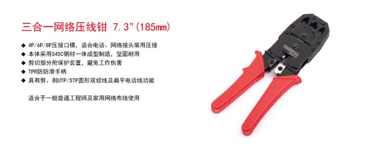 福吉斯特 三合一网络压线钳 4P/6P/8P压接口模,适合电话、网络接头常用压接。 |