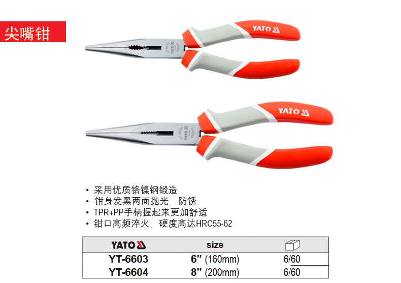 欧洲进口品牌易尔拓 6寸德国尖嘴钳 电工钳子 8寸尖头钳 工具多用钳子包邮 YT-6604 8寸(200mm)