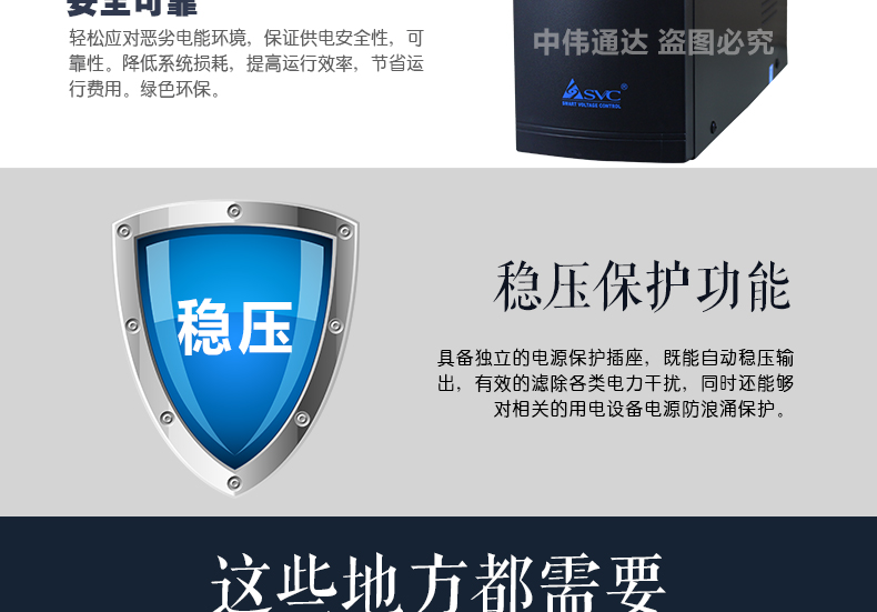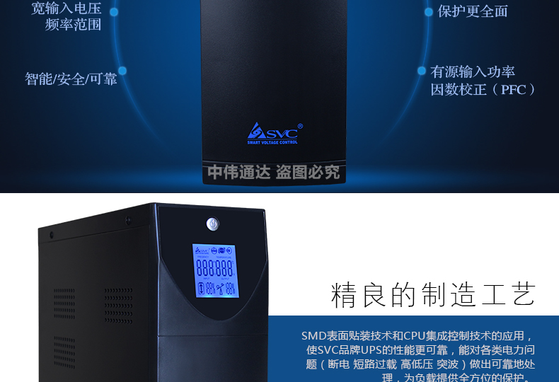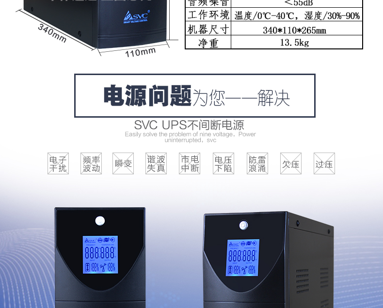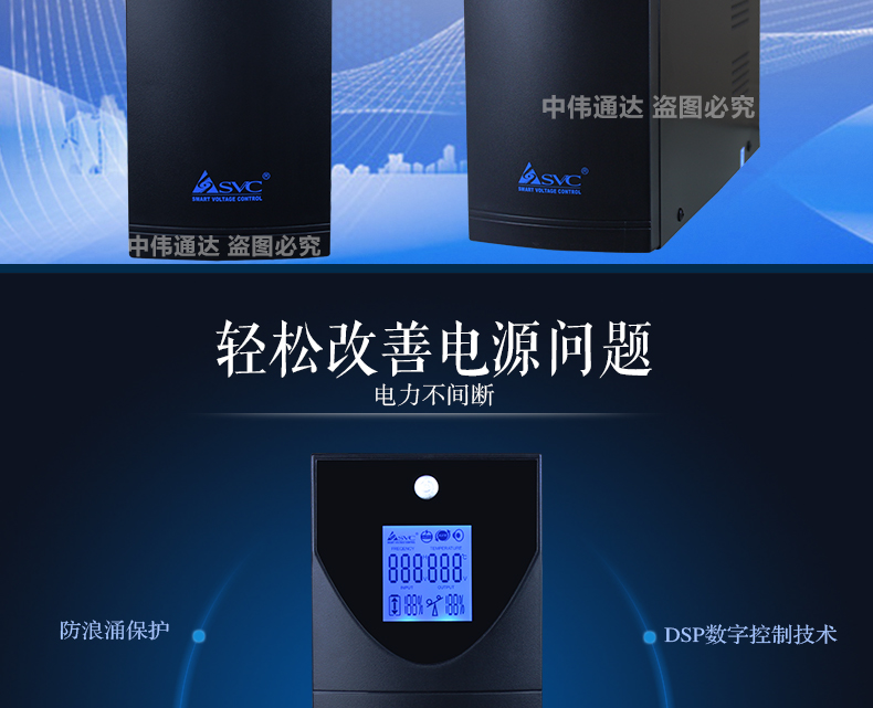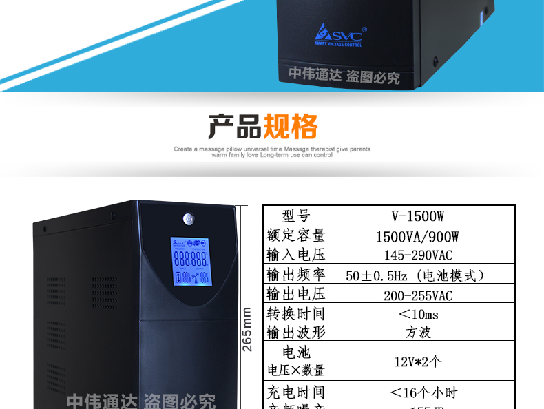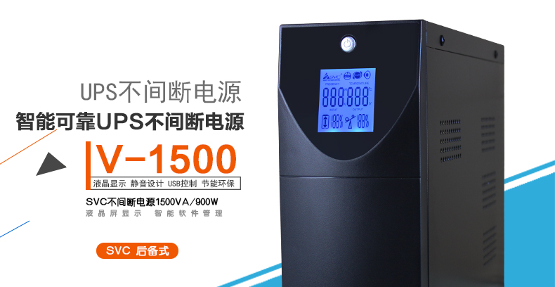 商品名称:SVC后备式UPS不间断电源V-1500W 1500VA/900W稳压延时一体 单电池