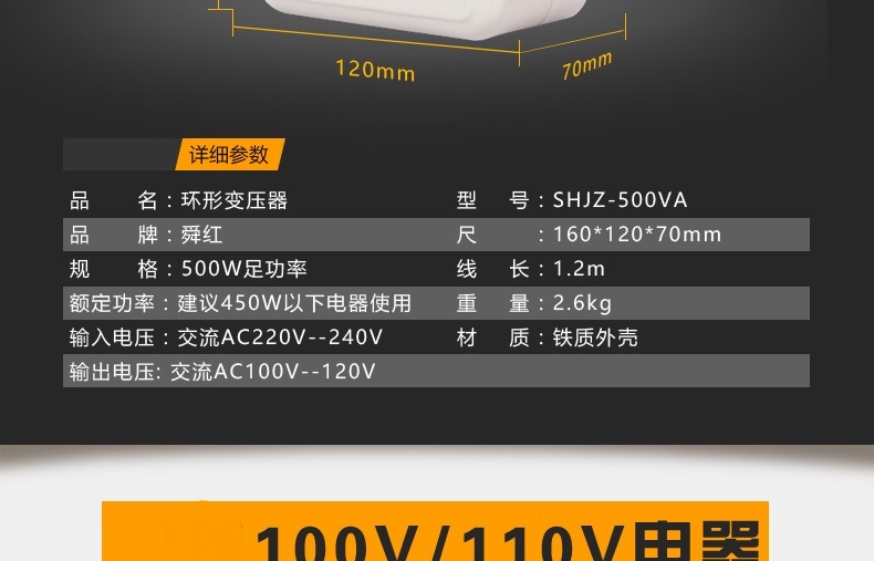 商品名称:220V转110V变压器 舜红500w足功率温控 220-110 进口电器电源电压转换器