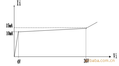 二端控制型:我公司生产的S3D4G型为二端控制型三相交流固态继电器,输入控制为直流电平控制,输入电压为4-36V,驱动电流为10-15mA。其输入特性如右图所示。