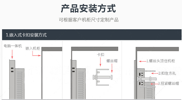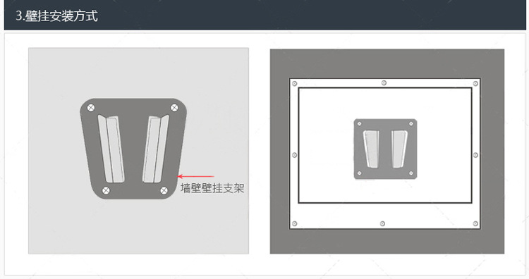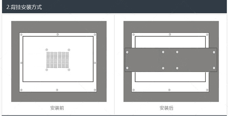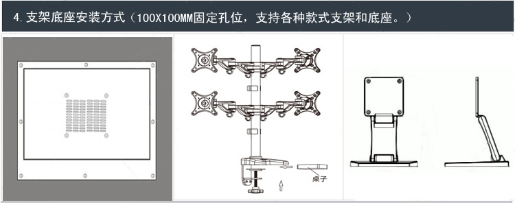 安装方式:该平板电脑还提供多种安装方式以适应广泛应用。满足客户对安装方式的多样化要求。能满足VESA 100安装方式。嵌入式开口安装方式,挂墙或站立式安装方式。因重量轻结构坚固,可配合多种安装支架。
