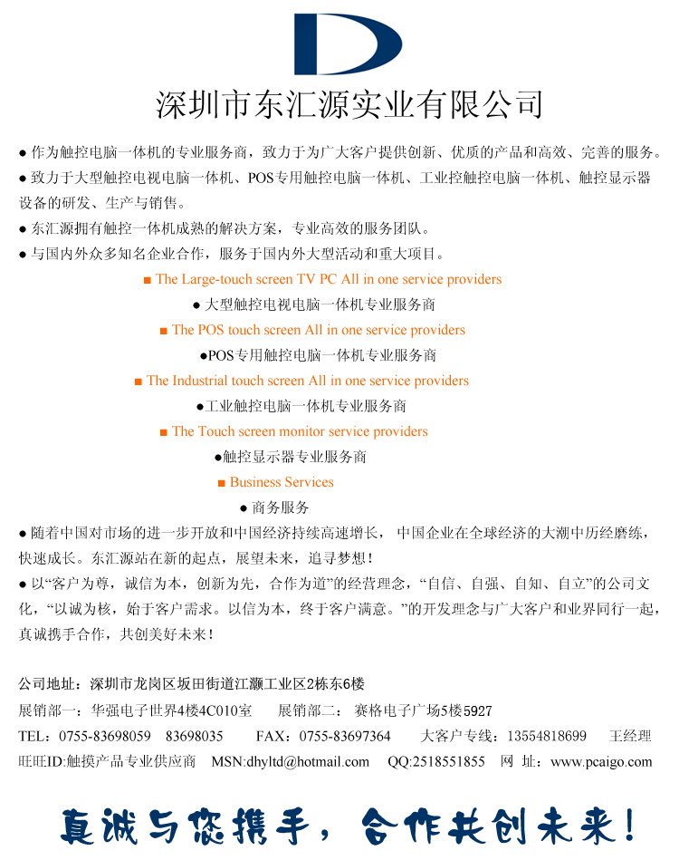 本款触摸电脑一体机是由我公司开发、生产、并面向全国进行销售,无任何中间环节。并且我公司只做硬件,没有软件上的附加值。因此,价格低的超乎你想象!做到低价不低质,给客户一个物美价廉选择!