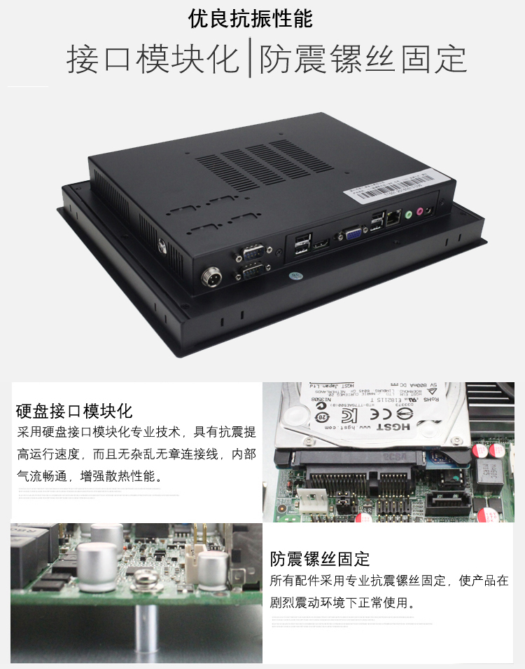 触摸屏:该系列工业平板电脑除CPU速度快,存储容量大,I/O接口丰富外,还有多种触摸屏可供选择。可按客户要求提供电容和电阻屏的可供选择选择。