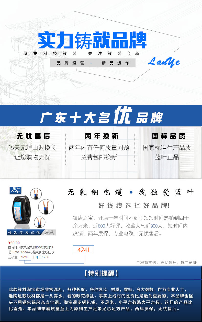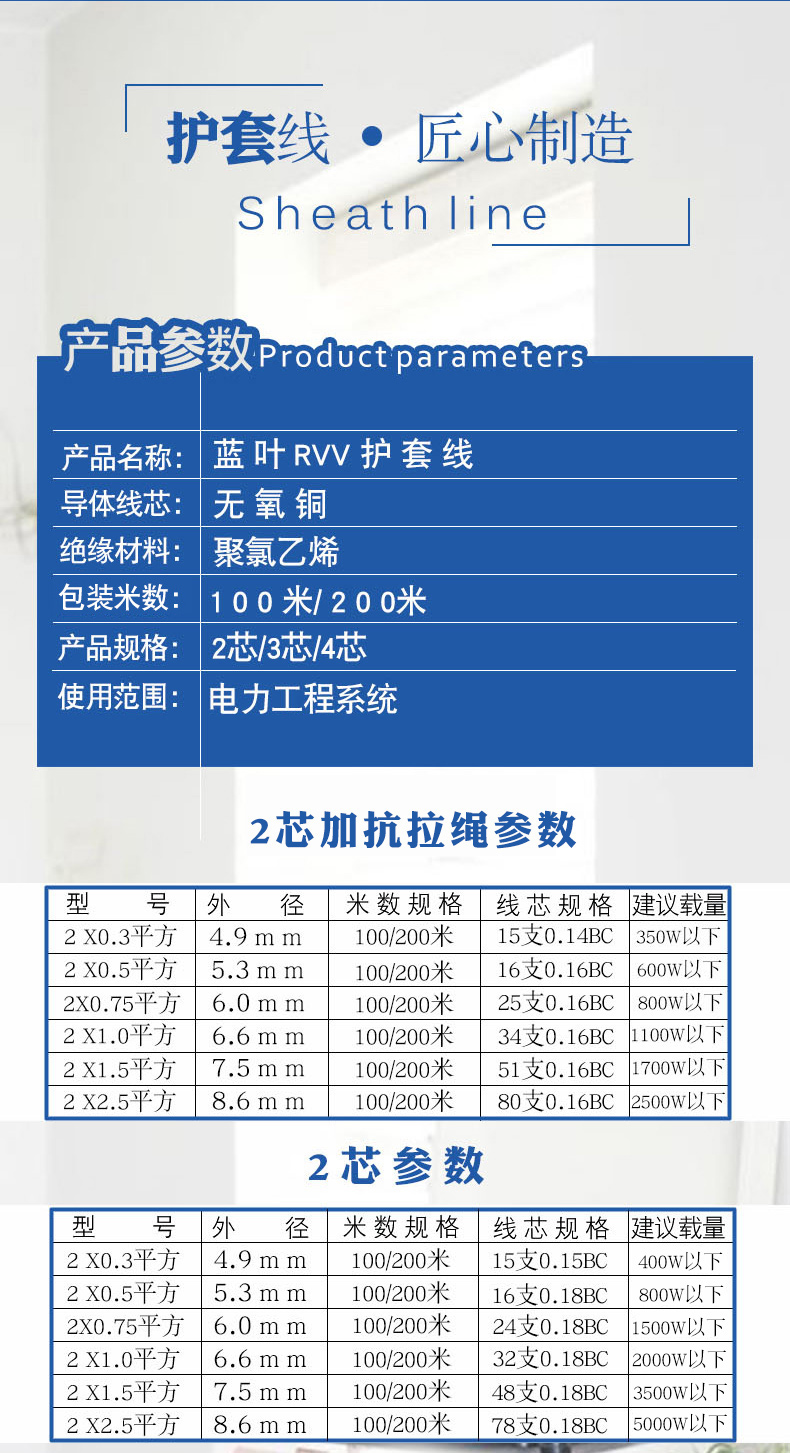 国标纯铜芯电线电缆RVV2芯3芯4芯0.75/1/2.5平方控制护套线防水线