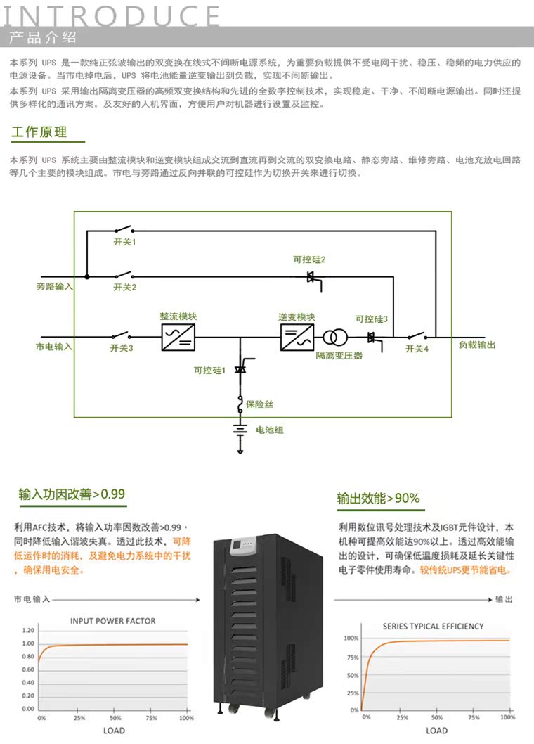 中川ZC系列380V三进三出30KVA50KVA工频在线式UPS不间断电源