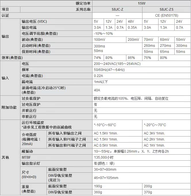 OMRON欧姆龙100W 4.5A 24VDC开关电源S8JC-ZS10024CD-AC2