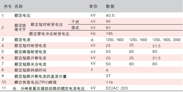 4.1 断路器主要技术参数